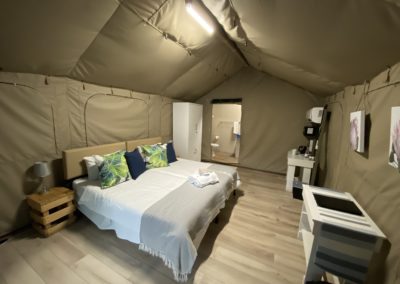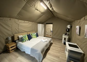 Accommodation is in the form of 21 luxury tents, accommodating up to 42 guests. All tents feature an en-suite bathroom, tea / coffee making facility, mini-safe, air cons and covered patio overlooking the Sabie River.